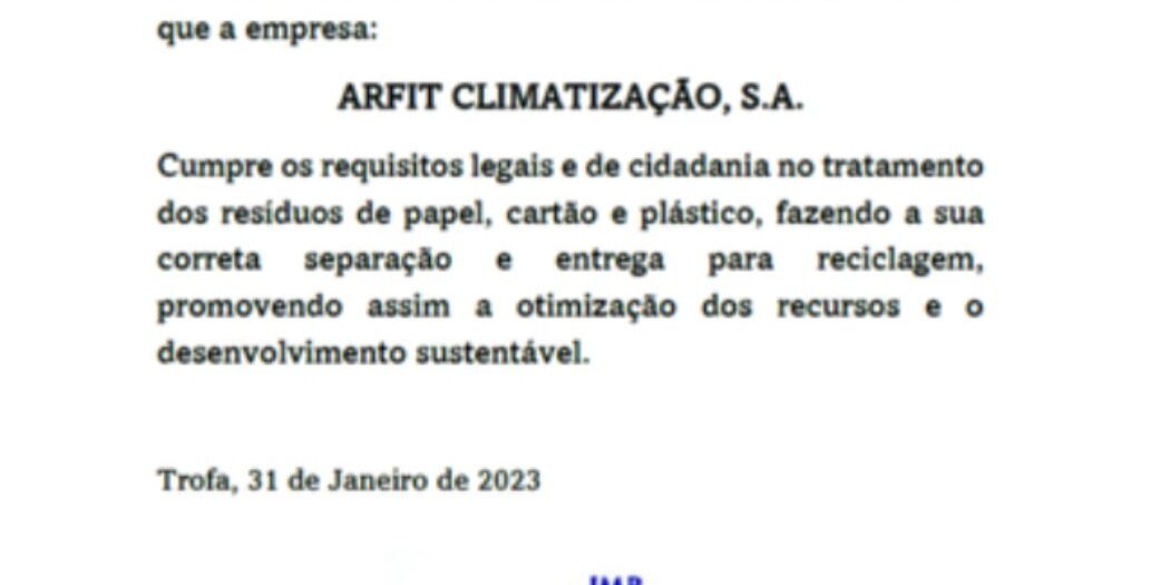 ARFIT pretende ser cada vez más consciente del impacto medioambiental del reciclaje, así como desempeñar un papel clave en este proceso.